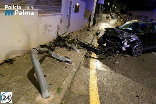 Novato al volante provoca destrozos en una casa en Palma tras conducir ebrio.