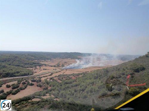 Se reporta incendio en campos de Ferreries, cerca de la vía principal.