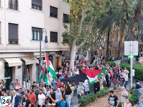 Manifestantes piden en Palma el fin de relaciones con Israel en solidaridad con Palestina.
