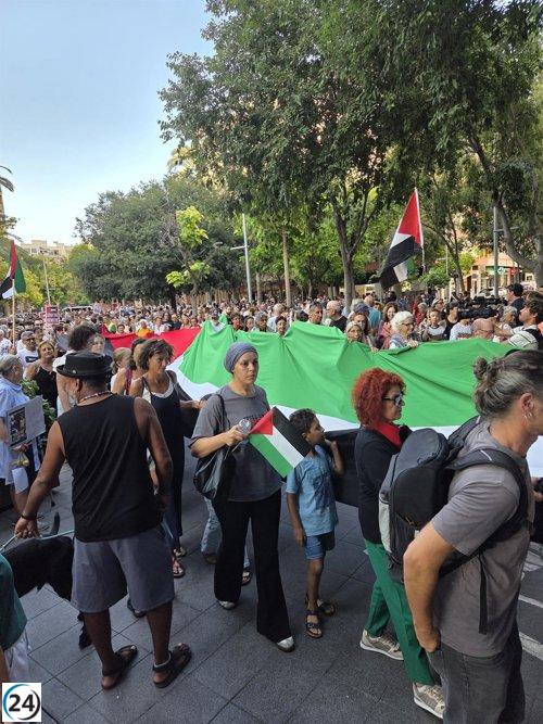 Cientos de manifestantes en Palma exigen protección para Flotilla Global Sumud y el fin del genocidio en Palestina.