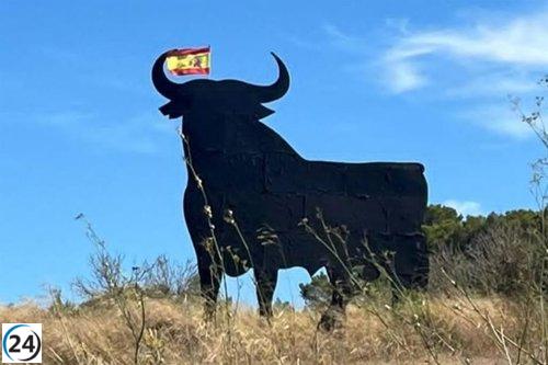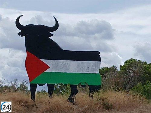El Toro de Osborne en Algaida exhibe una nueva pintura con la bandera palestina.