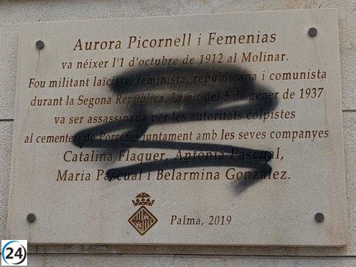 "PSOE, MÉS y Podemos condenan el vandalismo contra la placa de Aurora Picornell y les Roges del Molinar en Palma"