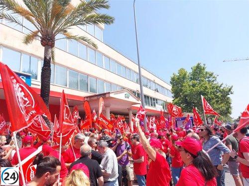CCOO y UGT aglutinan a cien personas en Palma para exigir la defensa de los derechos sociales.